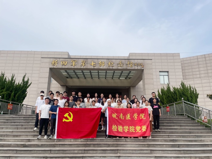 新四军第七师纪念馆展馆共设“皖江抗日起怒潮”“血泊中诞生的新四军第七师”“第七师健儿驰骋皖江”等8个展厅,师生党员从一幅幅珍贵的历史图文、一件件实物用品、一幕幕战斗场景中,重温新四军第七师从创建、巩固到发展、壮大的光辉历程,深刻感受革命先辈对党忠诚、信念坚定的崇高风范和不怕牺牲、英勇抗战的革命精神。站在鲜红的党旗面前,全体师生党员们重温了入党誓词,以铿锵有力的誓言再次坚定了初心和使命。