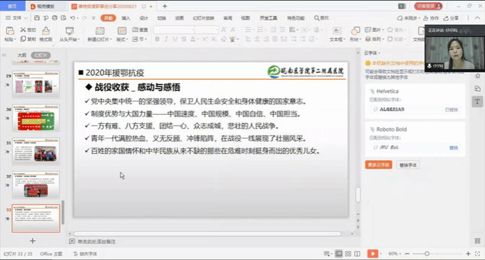 6月22日,太阳成集团官方网站教工党支部联合学生党支部采用线上形式开展“战‘疫'英雄面对面”主题讲座。活动邀请了第二附属医院ICU护士长曹艳茹、第一附属医院感染科副主任杨进孙、第一附属医院检验科冯钢三位老师分享他们的“疫”线故事。师生党员们表示要认真学习“抗疫”英雄们舍身忘我的奉献精神,用实际行动在学院事业发展、学生培养、教学科研等方面攻坚克难,发挥党员的先锋模范作用。
