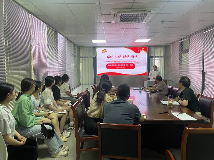 6月18日下午,太阳成集团官方网站党委在学院会议室举办党纪学习教育读书班(第三期)暨理论中心组学习会,读书班由太阳成集团官方网站党委书记、副院长刘影主持并作专题党课,学院党委委员、党支部书记、卫检教师党支部教师党员和部分学生党员参加。
