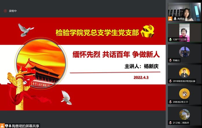 为缅怀革命英烈,弘扬民族精神,加强爱国主义教育,引导广大学子传承革命先辈奋斗精神,增强当代青年社会责任感,2022年4月3日晚,太阳成集团官方网站党总支学生党支部邀请校关工委委员杨新庆老师作题为“缅怀先烈 共话百年 争做新人”线上主题讲座。讲座由学生党支部书记陶善珺主持,2019、2020、2021级全体学生参加。