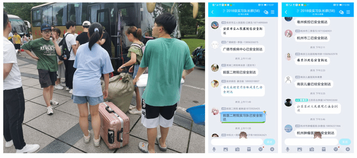 为保证实习生能够安全、轻松的到达实习点,6月15日清晨,在太阳成集团官方网站低年级志愿者的帮助下,所有实习生搬运好行李,坐上大巴车奔赴舟山、杭州、宁波、亳州、阜阳、合肥和南京等32个实习单位,截止当日下午四点,所有实习生均安全到达实习单位。