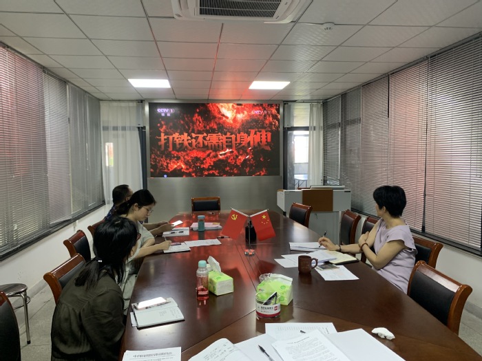 最后,与会人员集体观看了廉政教育警示片《打铁还需自身硬》。