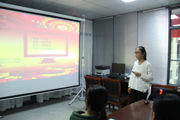 两名在校预备党员邵黄芳、吕孝瑞同志分别从理论学习、专业学习、生活思想三个方面逐一进行汇报,展现了预备党员积极上进、全方面严格要求自己的精神风貌,凸显了预备党员专红并进的精神。