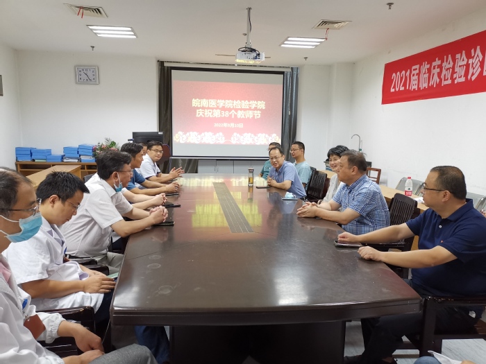 一次节日慰问,推动教育联动创新。9月10日上午,崔晓霞、洪亮带队前往一附院检验科,慰问奋斗在教育一线的临床教师,学院各教研室主任和新进博士参会。洪亮代表学院向全体临床教师送去节日的问候,感谢他们长期以来为党育人、为国育才的辛勤付出,教书育人、诲人不倦的耕耘劳作。他指出,正是因为有了一群优秀的临床教师,学院的专业建设和学科发展才能不断推陈出新。会上,大家就建立学院和附院教研室联动机制等进行了广泛交流,期望在人才引进、课题研究等方面加强合作。崔晓霞在总结讲话中指出,检验临床教师最近三年是“三线作战”,在治病救人、教书育人、抗击疫情等方面发挥了重要的作用,取得了一些成绩。她勉励各教研室要对标先进找差距,在专业建设和课程建设上主动思考,努力寻求创新,不断提高人才培养质量;要重视人才梯队建设,敢于给年轻教师加担子,坚持严管和厚爱相结合,推动青年人才成长。