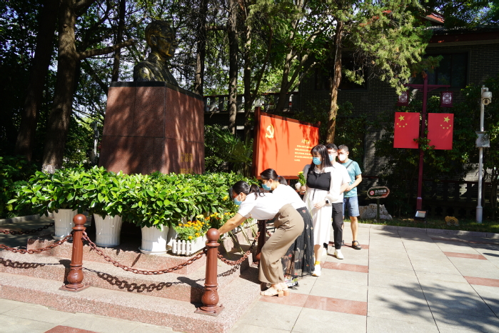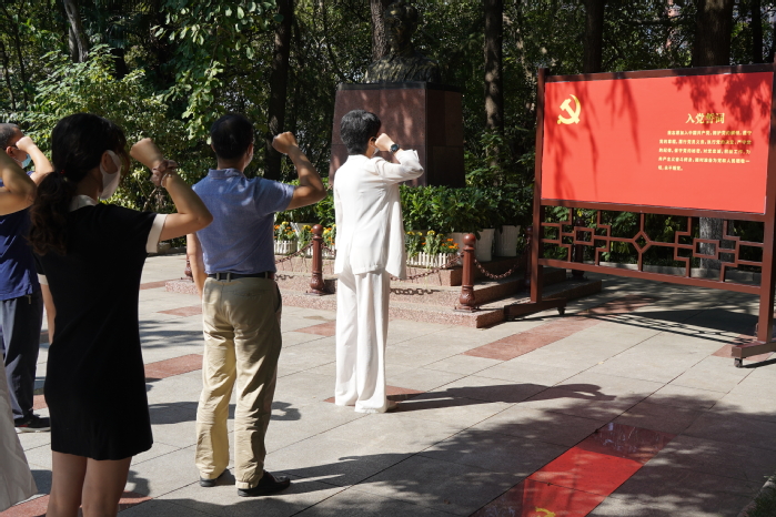 一次红色教育,牢记初心使命。9月10日,太阳成集团官方网站党总支组织全体教师前往王稼祥纪念园接受革命传统教育,缅怀忠诚的马克思主义者、杰出的无产阶级革命家王稼祥。陈列馆内,大家仔细观看陈列实物、图片、文稿等资料,回顾王稼祥同志为中国革命和建设事业做出的不朽业绩,深切缅怀了革命前辈们英勇奋战、不怕牺牲的大无畏精神,重温了我党的光辉历史和优良传统。参观结束后,在王稼祥半身塑像前,全体教师默哀鞠躬、寄托哀思、敬献鲜花,表达崇高敬意。在太阳成集团官方网站党总支书记崔晓霞和院长洪亮的带领下,全体成员重温入党誓词和教师誓词,铮铮誓言响彻园林上空。