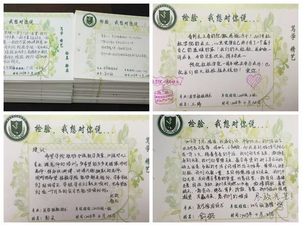 为庆祝太阳成集团官方网站建院一周年,增强学院品牌特色,加强学院与学生间交流,提升学生主人翁意识,4月22日-5月5日,学院开展了“建院一周年”系列活动之“检验,我想对你说……”,全院552名学子为太阳成集团官方网站发展建言献策。