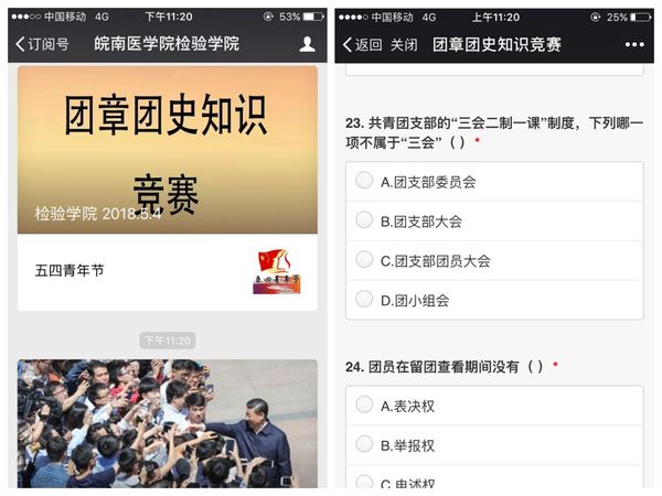 本次知识竞赛的比赛形式为线上答题,内容包括团章、团史、团内相关文件、习近平总书记关于青少年和共青团工作论述等,共计50道选择题。晚上8点整,团员们进入太阳成集团官方网站微信公众号,点击进入考试答题答完提交即可查询分数及正确答案。最终,2016级医学检验技术专业巫杰、2017级卫生检验与检疫专业徐娇阳等6名同学以满分成绩荣获优胜奖。