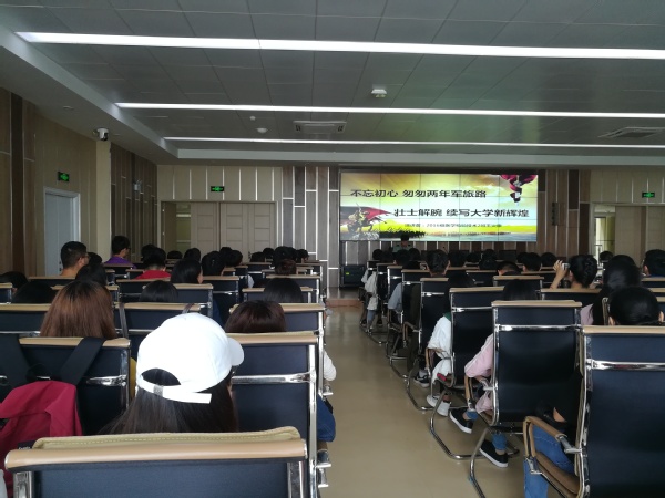 为进一步推动学院征兵工作,牢固树立参军报国意识,引导广大学子积极投身绿色军营,5月24日上午9点,太阳成集团官方网站在4号实验楼二楼报告厅举行“不忘初心,匆匆两年军旅路;壮士解腕,续写大学新辉煌”专题宣讲,主讲人为2016级医学检验技术2班退伍大学生王炎康同学,学院2016级、2017级全体学生到场聆听,宣讲会由辅导员都芳主持。