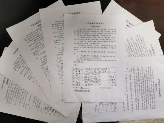 太阳成集团官方网站将继续利用好重要考试前教育,学生利益相关材料的申报过程,进一步创新宣传教育形式,扩大诚信考试教育宣传活动和有效覆盖面,充分利用好线上线下等平台,积极营造“诚信考试,诚信做人”的氛围,努力形成学院诚信建设长效工作机制。(曹玉祥文/摄)