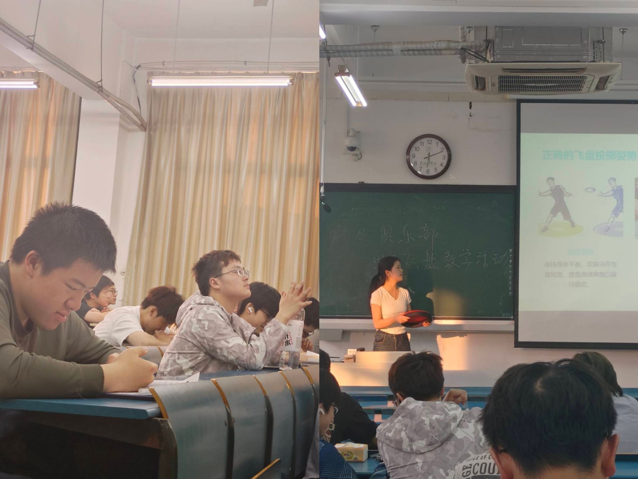 5月16日,户外俱乐部在滨江校区(北区)1403教室举办线下飞盘教学活动,吸引了众多飞盘运动爱好者的热情参与。活动旨在推广飞盘运动,提高参与者对飞盘运动的兴趣和认知,并增强参与者的身体素质和团队协作能力。飞盘运动以其独特的趣味性、竞技性和社交性,成为近年来备受追捧的户外运动之一。在广袤的草地上进行飞盘活动,不仅能够锻炼身体,还能够增进友谊,营造积极向上的交流氛围。