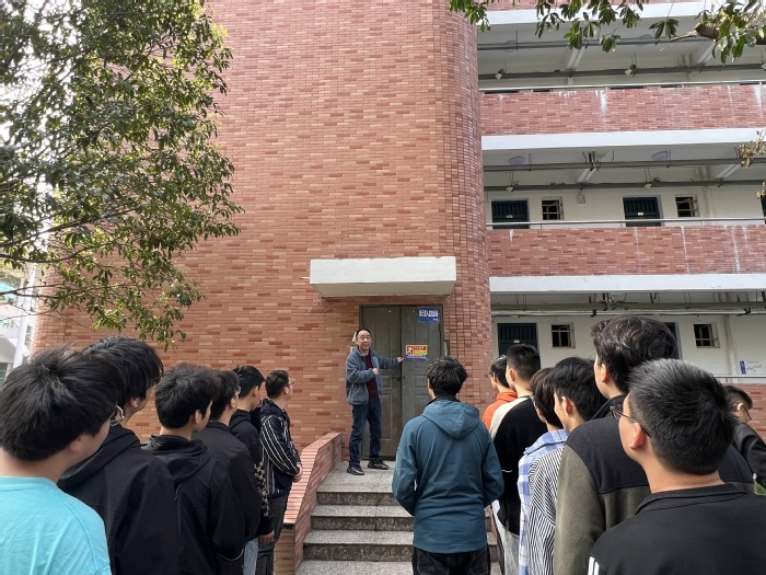 活动开始,卢举纲将参训人员集中至学生公寓6号楼C区北侧道路进行演习预备,对学生们讲解了消防安全知识培训—火场逃生知识。紧接着进行疏散演练,在工作人员的正确引导下,所有学生冷静应对,井然有序地沿学生公寓6号楼消防通道疏散。