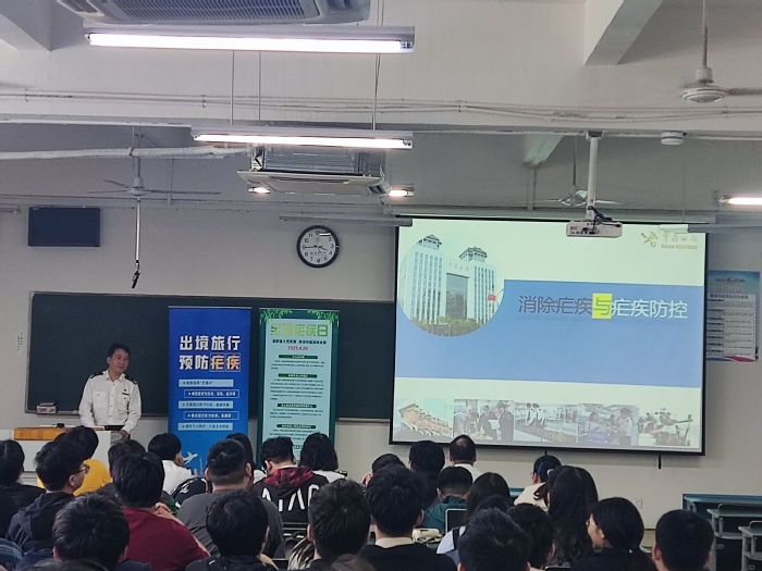 宣讲会上,祝高峰讲解了出入境预防相关知识,并对学生感兴趣的话题进行了交流。先裕飞生动有趣地介绍了海关卫生检疫相关工作,阐述了大学生活的意义以及获取学习的方法。两位报告人激励同学们不断前行,为祖国的卫生检疫事业作出自己的贡献。