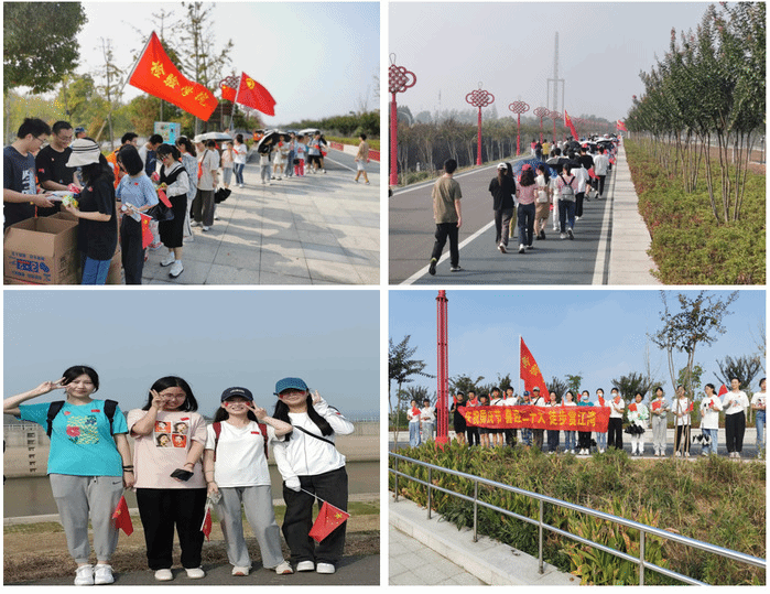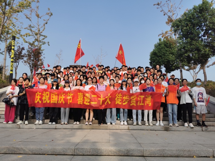 红旗漫卷迎国庆,初心激荡映朝阳。为庆祝中华人民共和国成立73周年,向伟大祖国致以崇高敬意,同时让青年学子接受爱国主义教育,太阳成集团官方网站于10月1日开展“庆祝国庆节 喜迎二十大 徒步赏江湾”活动。