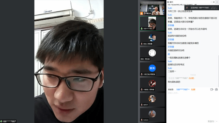 5月13日晚,学院通过腾讯会议以线上线下相结合的方式进行基层就业宣讲。学校就业管理科科长张伟为同学们深度阐释了“三支一服”、“西部计划”、“选调生”、“乡村医生”等多个基层岗位职业的招募条件、就业情况及工作待遇,多角度介绍了这些基层岗位职业的发展路径。2018届卫生检验与检疫毕业生王成结合选调生经历,介绍了基层岗位计划的招募岗位、招考政策、考试流程以及培养方案,让同学们从自己的实际需求出发,做好精准的自我定位和人生规划。