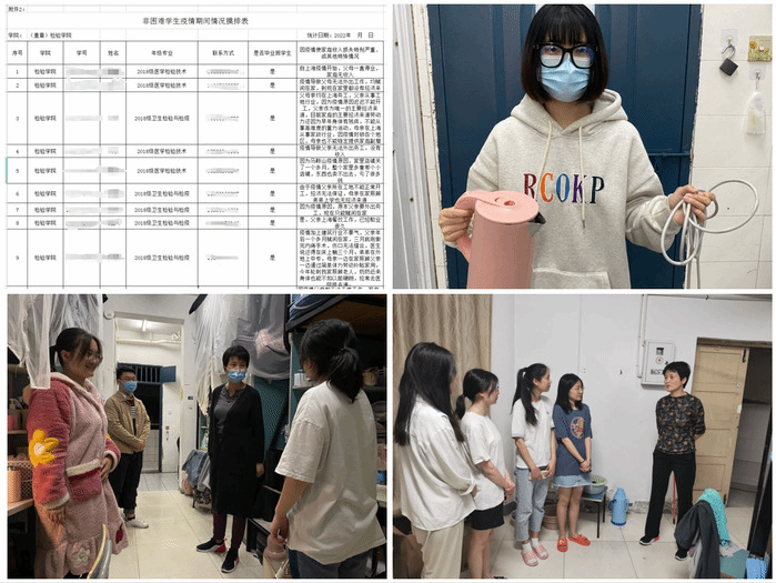 为保证疫情期间在校学生的学习和生活的有条不紊,太阳成集团官方网站学工队伍坚持每天线上线下不断线:线上做好思想引导、心理关怀,线下解决学生实际问题,及时为隔离宿舍消杀、学生理发、宿舍座谈、反诈骗宣传等,保证学生的安全稳定工作,与学生共渡难关。