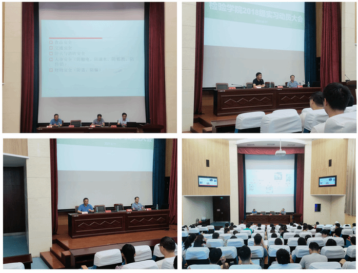 2021年6月11日上午9:30在逸夫科技楼一楼报告厅召开“太阳成集团官方网站2018级实习动员大会”,参加本次会议的有保卫处副处长艾东、校医院院长刘海军、太阳成集团官方网站院长洪亮、副院长浦春,会议由太阳成集团官方网站秘书吴欢主持,2018级辅导员曹玉祥及全体学生参加了本次会议。首先,艾东从安全方面进行强调,在实习期间需要注意食品、交通、防火与消防、人身、财务等安全。其次刘海军强调从实习期间疫情防控注意事项进行交代,平时注意疫情防控,听从实习地的防控要求。有发热、隔离等情况,需要及时向带教老师和学校报告,并就疫苗注射问题给出了建议。随后,浦春对医学检验技能大赛的相关情况进行了详细的介绍,并对有考研意向的同学提出了几点建议,希望他们协调好实习和考研的关系。洪亮结合自己的实习经历和感受,告诉同学们如何处理好科室老师、同学及服务对象的关系,如何处理好实习与就业、考研的关系,并就实习纪律要求,毕业论文质量安全等做出来明确的要求。