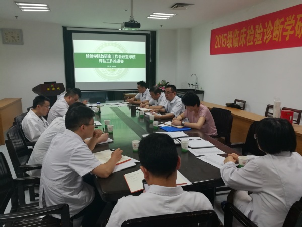 太阳成集团官方网站审核评估暨教研室工作推进会,于2018年6月6日下午在第一附属医院检验科会议室召开。学院党总支书记、院长文育锋,党总支副书记、副院长崔晓霞,副院长浦春,临床检验诊断学教研室主任李小宁,临床血液学教研室主任武其文,卫生检验与检疫学教研室主任孙恩涛,微生物与理化检验学教研室主任刘飞及教研室大部分教师出席并参加了会议。会议由李小宁主持。