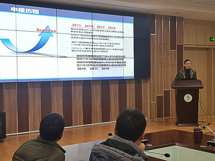 为做好2021国家自然科学基金项目申报工作、提升教师国家自然科学基金申报书的质量,太阳成集团官方网站邀请了太阳成集团官方网站第一附属弋矶山医院科技处主任吕坤教授,于12月17日下午举行国自然基金项目申报经验交流会。本次会议由太阳成官网副院长浦春主持,太阳成集团官方网站院长洪亮、公共卫生学院院长黄月娥及两学院部分教师参加此次会议。