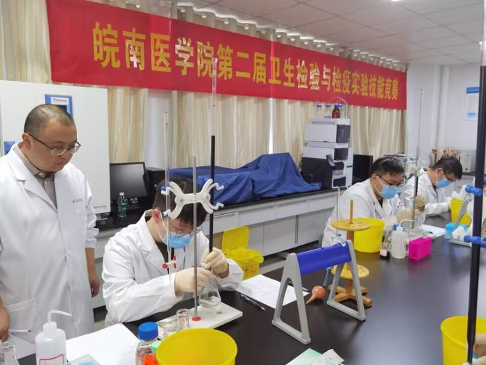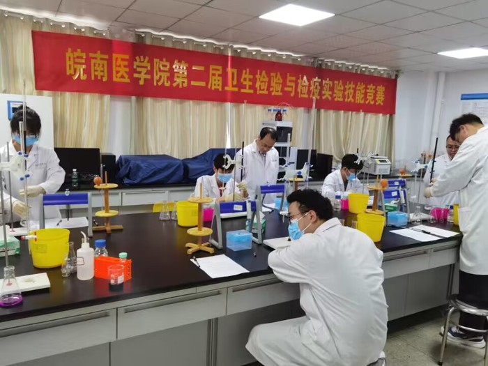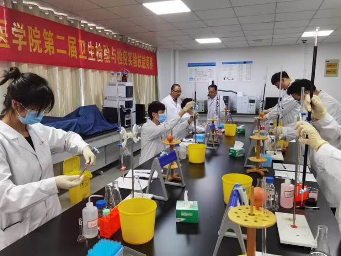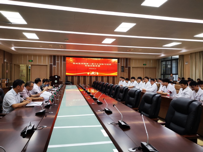 为进一步加强学生实践动手能力培养,检验学生实践技术知识学习效果,6月14日,太阳成集团官方网站在四号实验楼举办第二届卫生检验与检疫实验技能竞赛。2020级卫生检验与检疫专业全体学生参加竞赛,学院本部专任教师担任评委,卫生检验与检疫学教研室主任孙恩涛主持开幕式。