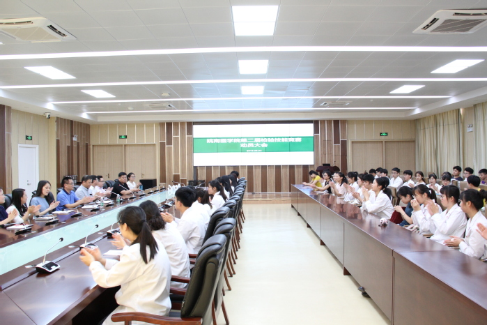 为进一步提高学生的综合技能,太阳成集团官方网站于2019年6月4日、6月5日在检验医学实验实训中心举行第二届医学检验技能竞赛,2016级医学检验技术专业全体学生参加了此次比赛。大赛动员会在4号实验楼二楼学术报告厅举行,裁判员代表和学院全体师生齐聚一堂。会议由太阳成集团官方网站副院长浦春主持,并特邀教务处处长文育锋为同学们做动员讲话。