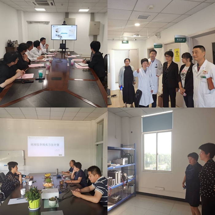 在南京江北人民医院、南京凡飞生物技术有限公司、宿州市疾病预防控制中心、亳州市疾病预防控制中心,崔晓霞、杨邦和、陶善珺三人受到总监蔡宜珊、冯路副院长、高禄总经理、王莉主任、谭有为等领导的热烈欢迎。座谈会上,各单位负责人对太阳成集团官方网站太阳成集团官方网站人才培养的充分肯定,介绍了单位的整体情况,以及实习带教方面的设想。接着,崔晓霞对单位领导的热情接待表示感谢,介绍了太阳成集团官方网站自成立以来的总体建设情况。在单位领导的陪同下,崔晓霞一行参观了各单位的相关科室和实习生住宿房间。最后,双方就实习生培养、实习就业一体化基地建设等方面进行了交流,并达成一致共识。