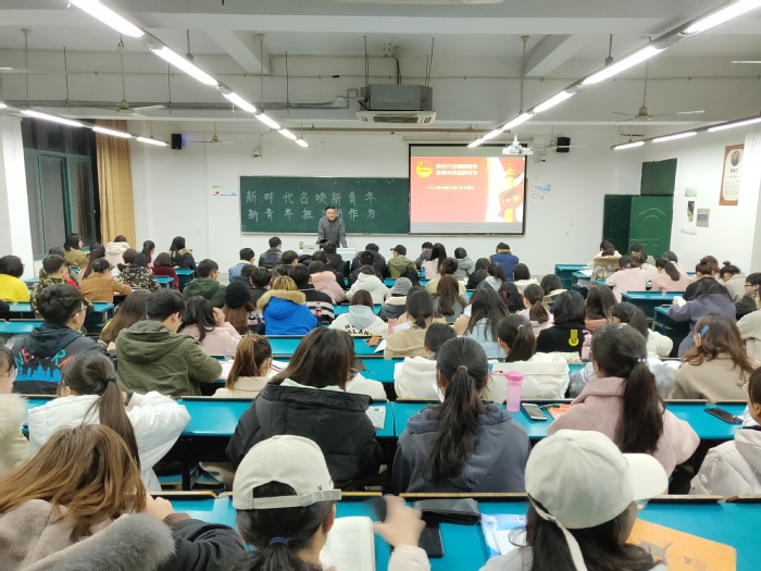 “青年兴则国家兴,青年强则国家强。”为引导广大青年“学习十九大精神的内容”、 “思考十九大精神的内涵”以及“践行十九大精神的责任”,2019年3月9日晚上七点,太阳成集团官方网站特邀请校团委副书记余亮在2103教室开展“新时代召唤新青年,新青年担当新作为”的主题团课,参加本次团课的有太阳成集团官方网站团委副书记曹玉祥老师、太阳成集团官方网站第十一期青马班全体成员、以及太阳成集团官方网站部分学生党员和入党积极分子。