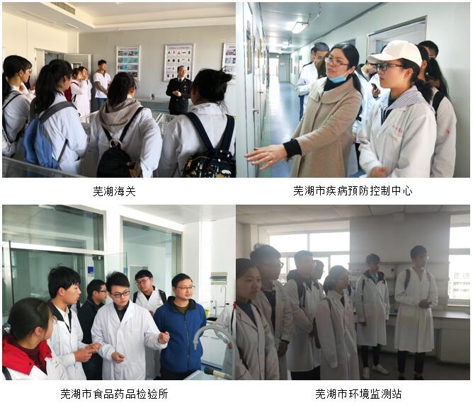 在芜湖市海关、芜湖市疾病预防控制中心、芜湖市食品药品检验所以及芜湖市环境监测站,在负责领导的介绍下,60名卫生检验与检疫专业学生参观了有关实验室,了解了专业工作领域、工作政策和法规。芜湖市海关先欲飞科长,揭开了海关的神秘面纱,强调“防有害生物,守国门安全”是每个海关人的重要职责。在芜湖市环境监测站,同学详细了解了工作站的环境,和讲解老师就专业发展方面进行了讨论。