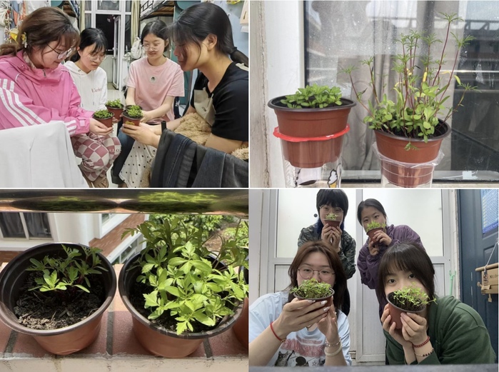 植一抹暖绿,溢满手芬芳。为提升大学生的劳动技能,共同迎接“525心理健康日”的到来,学院组织开展了劳动技能比拼活动(绿植种植活动)。活动期间,同学们埋下种子,每天按时定量浇水,并拍照记录播种、萌发、生长的过程。在同学们的悉心照顾和精心培育下,一盆盆绿植茁壮成长,是辛勤劳动结果的最好展示。同学们学习掌握了不同的劳动相关知识,动手能力、劳动技能也得到了很大的提升,从而使同学们能够更加坚定和自信地面对未来的挑战。