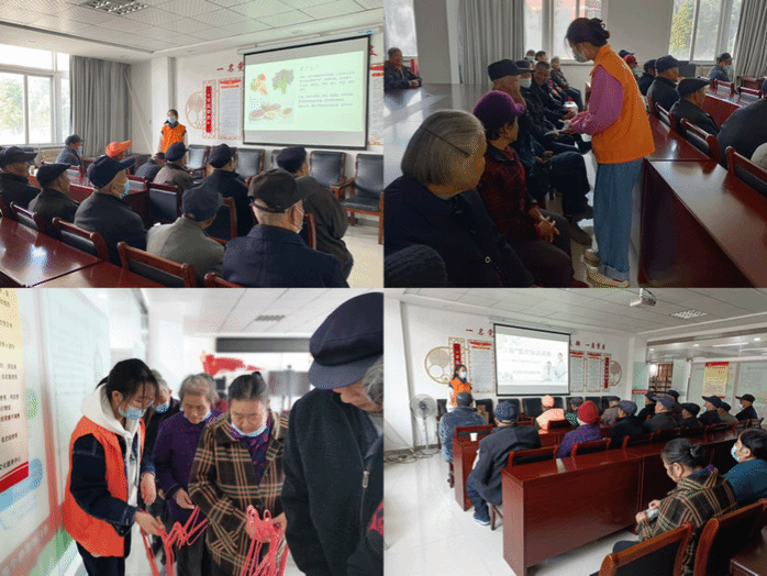 医疗宣讲懂“三高”。为提高社区老人对“三高”的重视,进一步了解自己身体状况,有意识地调整日常生活习惯,志愿者在社区二楼会议室开展“三高”医疗知识讲座。通过讲解“三高”的病因、预防及治疗方法,老人们对此慢性病有了更科学的认识。宣讲过程氛围轻松愉悦,老人之间以及老人与志愿者相谈甚欢。有一位老人说:“大学生就是大学生,充满活力与生机,看着你们就让我想到自己年轻时的样子,感谢你们”。通过本次宣讲,老人们对“三高”有了更清楚的认识,更加重视平日健康饮食,规律作息,积极锻炼。