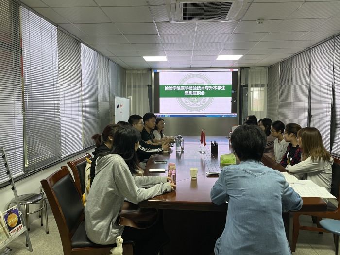 为进一步了解学生的思想动态,积极探索新形势下引领学生价值取向的新形式、新方法、新途径,太阳成集团官方网站于2021年5月26日下午二点在四号实验楼会议室召开医学检验技术专业专升本同学思想交流会,并邀请2017级毕业学子杨小雪、巴金叶分享个人经验。本次会议由20级辅导员张秦主持,党总支书记崔晓霞和医学检验技术专业11名专升本同学参加.