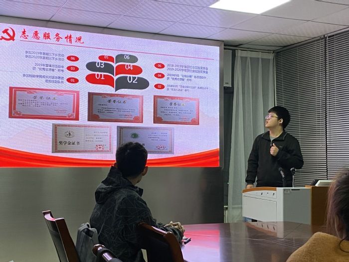 按照《中国共产党发展党员工作细则》的要求,为努力建设一支信念坚定、素质优良、规模适度、结构合理、纪律严明、作用突出的党员队伍,11月22号下午,太阳成集团官方网站党总支学生党支部在党员活动室召开了2020年下半年发展对象差额推荐汇报会,学生党支部纪检委员曹玉祥主持会议,党总支副书记崔晓霞,学生党支部组织、宣传委员张秦,学生党员和学生群众代表参加了此次会议。