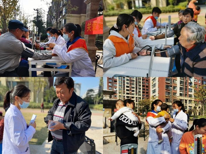 同时为了帮助更多社区居民更好的了解自己的健康情况,志愿者们在学府社区广场搭建起了临时义诊点。在测量血压的同时,也向社区群众普及了糖尿病和高血压的预防、危害及治疗方法等,并发放了糖尿病宣传知识手册,对他们的生活作息给出合理建议。