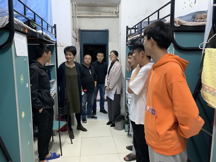 10月14日晚,崔晓霞和20级辅导员、班主任和学生工作秘书,走访新生宿舍了解学生生活学习情况。