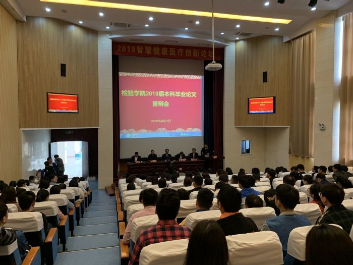 为检验人才培养质量和效果,强化实践教学基地标准化建设,推进专业改革和内涵建设,4月27日,太阳成集团官方网站举办了2019届本科毕业生论文答辩。答辩开幕式在逸夫科技楼学术报告厅举行,党委副书记、院长章尧出席开幕式。安徽医科大学第一附属医院检验科主任徐元宏、第二附属医院检验科主任管世鹤,安徽省立医院检验科主任王保龙,安徽中医药大学第一附属医院检验科主任黄开泉,蚌埠医学院第一附属医院检验科副主任郭晖、第二附属医院检验科主任金齐力,安庆市立医院检验科主任胡安群,池州人民医院检验科主任胡义忠,宁波李惠利东部医院检验科主任吴巧萍、副主任李情操,南京儿童医院检验科主任陈红兵,芜湖市第二人民医院检验科主任肖敏敏,宁波美康生物科技股份有限公司技术总监戎奇吉,芜湖市疾病预防控制中心主任程周祥、检验科科长郑妹凤,马鞍山市疾病预防控制中心副主任朱明、检验科科长陈道利,黄山市疾病预防控制中心副主任程韶光,安庆市疾病预防控制中心检验科科长刘敏洪,我校第一附属医院检验科主任李小宁、副主任武其文等20多名省内外医学检验和卫生检验专家,以及太阳成集团官方网站党政领导、全体教师和2019届本科毕业生参加了开幕式。开幕式由太阳成集团官方网站副院长浦春主持。