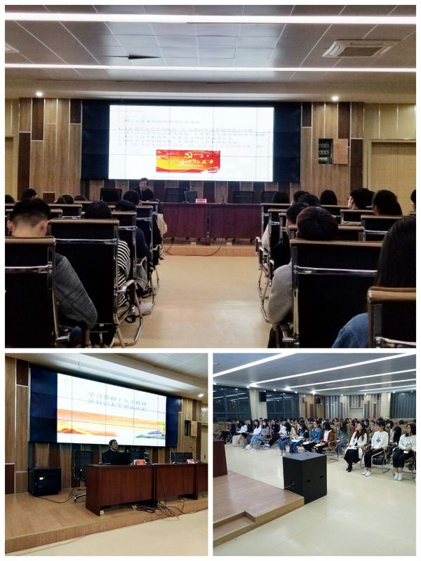 讲座上,周老师首先阐述了十九大召开的重大意义,介绍了十九大报告内容,并列举了十八大以来五年的历史性成就。同时,他结合个人经历、思考和现实案例,深入浅出地为同学们讲解报告的精髓和要义。最后,周老师提出,希望同学们站在新的历史起点,心怀家国担当,扎根医学事业,用实际行动传播青春正能量,不忘初心,牢记使命,志存高远,脚踏实地,勇做时代的弄潮儿,在历史洪流中贡献自己的青春力量。