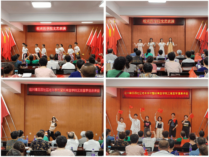 文艺表演,欢乐输送。为丰富社区文化生活,志愿者精心准备了文艺表演。活动以《我和我的祖国》拉开序幕,朗诵《祖国,我为你高歌》、民族舞《雨竹林》、小品《精神病也要紧跟时代》、二胡独奏《赛马》、歌曲《童年》、舞蹈《荷塘月色》、相声《我的爷爷》……青春而富有朝气的演出,赢得台下观众阵阵掌声,得到了居民的一致认可。